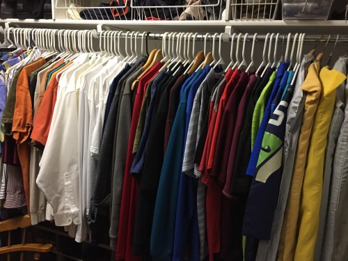 I have clothes I no longer wear (since retired): Docker-like slacks, dress pants (not sure what still fits), sport coats covered to keep dust off, ‘nice’ long-sleeved button-down shirts (dusty), leather shoes (no wingtips or suede).