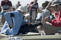 Those wishing to run fast were out of the corral immediately after the band. Last to start were the “heavy” military and civilian groups, with each person carrying a 35-pound backpack, plus water and other consumables for the course of the day. The pack must weigh at least 35 pounds at the start and finish.