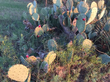 The good news is that both the leaves and fruit of the prickly pear plant are edible for both animals and humans. I have eaten the leaves (needleless or needles removed) cut up in scrambled eggs, and I would again if it’s on the menu. Eating the red fruit has been described as a cross between all-natural bubble gum and watermelon. I may try it. The liquid is used for many tasty dishes (see recipes on line).