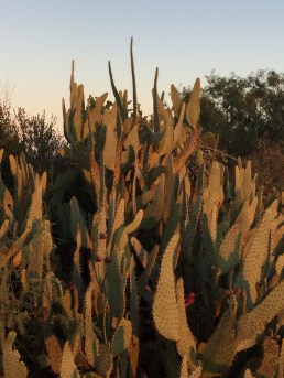 To be fair, the nopales cactus is the most common form and can easily be found throughout desert regions (or anywhere) of the southern US, from Florida to California. It has beaver tail-like thick leaves (although I have seen other shapes, such as the mule-ear variety), and the term prickly pear actually refers to its fruit, a bright neon colored ball that screams “eat me” to cattle. The cow eats it, fails to digest the seeds, passes same with a nice moist cow patty, and a new plant is born. Millions of prickly cacti have started life, literally in a nutritious pile of cow shit.